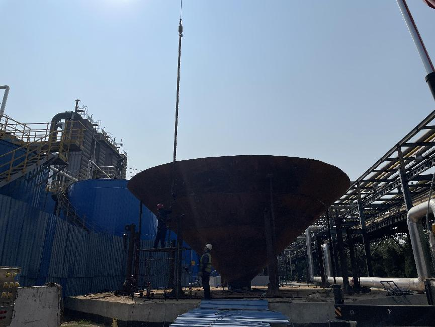 很快,項目破土動工。車間嚴抓施工質量,從打樁到降水挖槽,施工進度持續推進。5月份完成基礎澆筑成型,7月份開始罐體焊接,現已完成罐體底部焊接。目前,整個工程已基本完工。