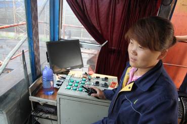筆者去查了石桂英的出勤,6月出勤30天,加班3天;7月出勤31天,加班1.5天;8月出勤30天,加班2天。據其同事講,8月份,她班上的另一堆取料機司機因家中有事請假,人員忙不過來,她同時操作兩臺堆取料機,她瘦弱的身影在兩條軌道間穿梭,在7米多高的架子上爬上爬下,忙起來飯都顧不上吃,一個班下來,要上下10多次,衣服濕了又干,干了又濕,但她默默地認真工作著,無一句怨言,聽別人說,在崗位缺員的情況下,她曾創下了連續1個半月同時操作兩臺堆取料機的記錄。
