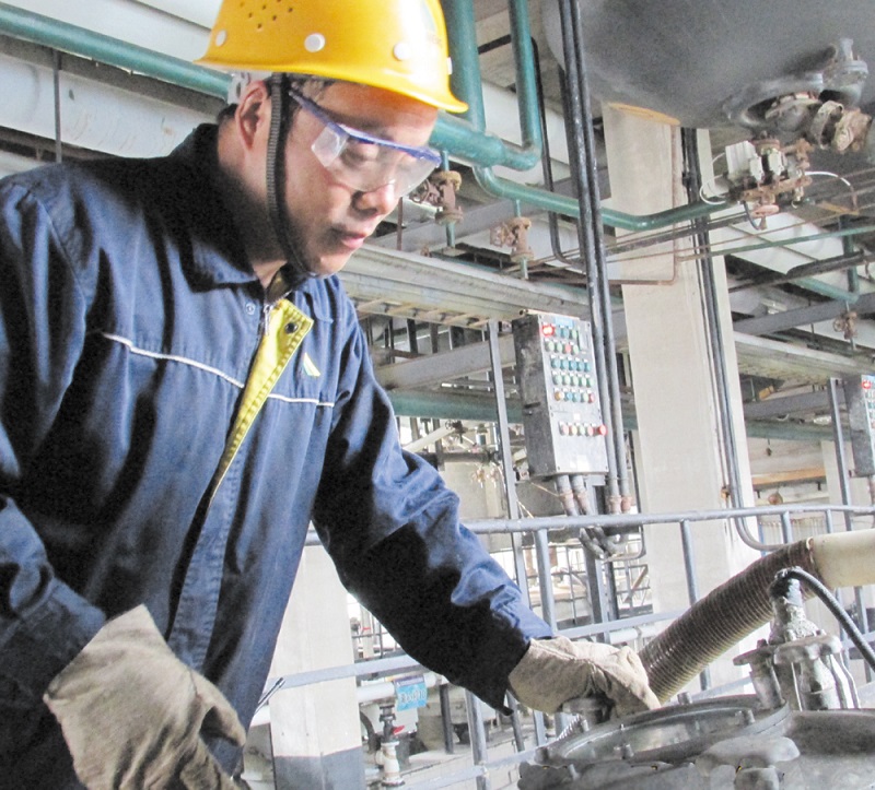 那是今年的73日,對甲酚車間檢修,離心地溝需清理,因其狹窄不易處理,很多人都不愿“攬”這個活。張劃之得知后主動請纓,在他的帶動下,員工也積極加入到清理隊伍中來,大家干得熱火朝天,至5日上午全部清理完畢,比原計劃提前了半天,這塊硬骨頭也“啃”掉了。每次檢修時,碰到難干棘手的活,大家首先想到的是張劃之,“他干活實在,不偷懶、不湊合,交給他放心”。